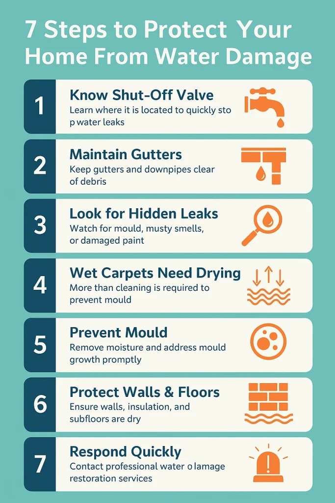 Water damage is one of the most common and costly issues homeowners face, yet many people don’t think about it until it’s too late. A single burst pipe, washing machine overflow, or heavy rain event can create thousands of dollars’ worth of repairs in just a few hours. Beyond the obvious clean-up, water intrusion can cause hidden structural damage, ruin carpets and furniture, and even create serious health risks if mould develops. Protecting your home starts with awareness and a few practical steps that every homeowner can take.